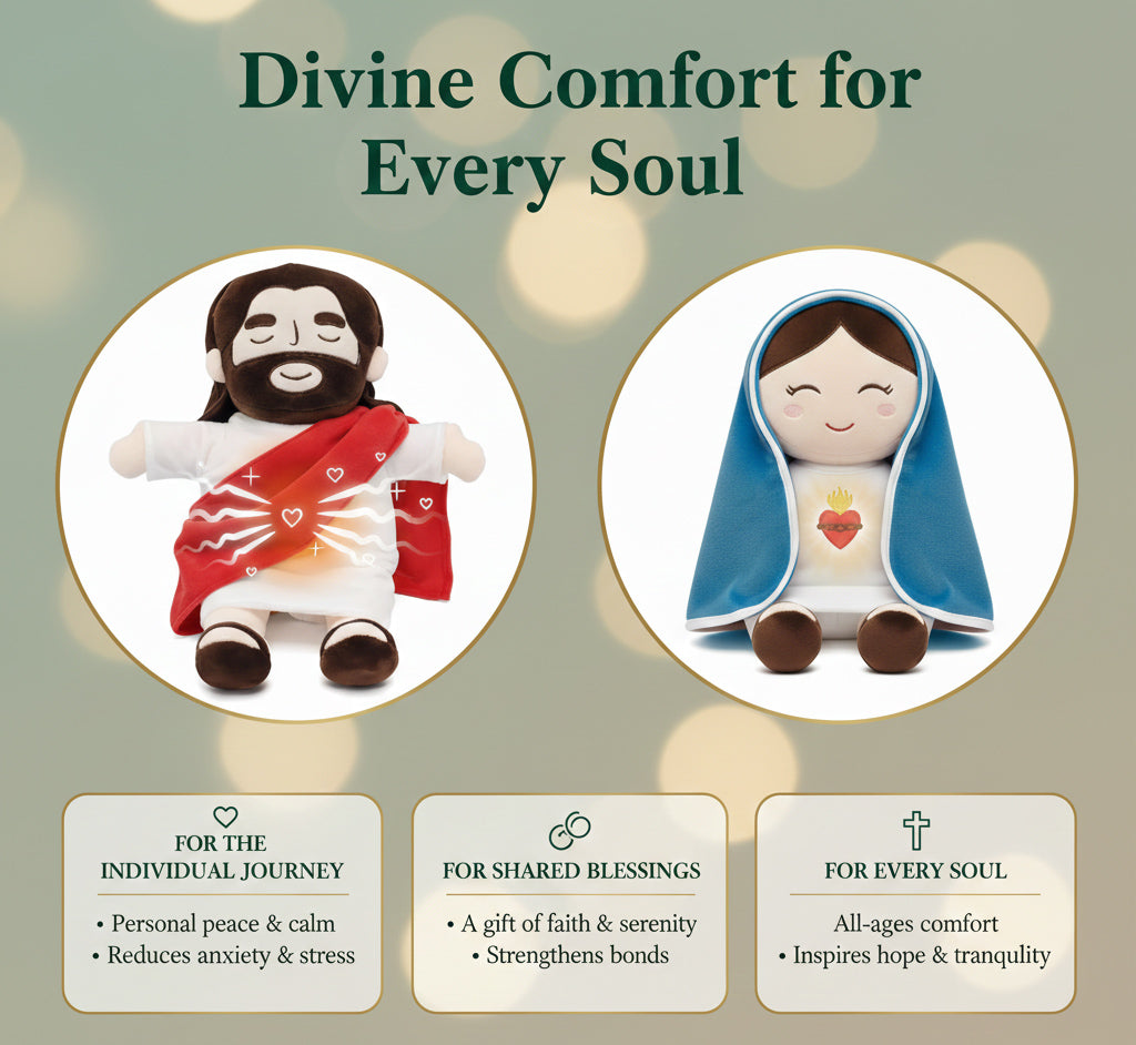 The Breathing Plushies are engineered to provide genuine comfort, combining the soothing presence of faith with therapeutic, rhythmic motion. Every detail is designed to help you or your loved ones find calm, reduce anxiety, and enjoy a deeper, more peaceful sleep.
